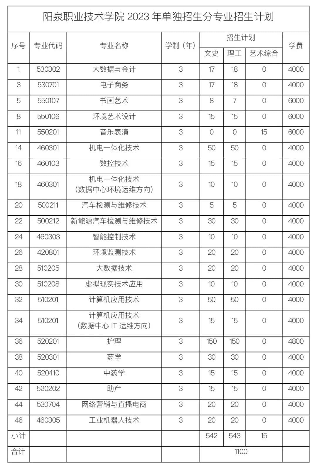 学院2023年单独招生共计22个专业,计划1100人。学院可根据各专业报名生源情况,报请省教育厅、省招生考试管理中心批准后对分专业招生计划作相应调整,缺额部分可转为普通高考招生计划。